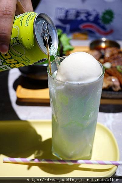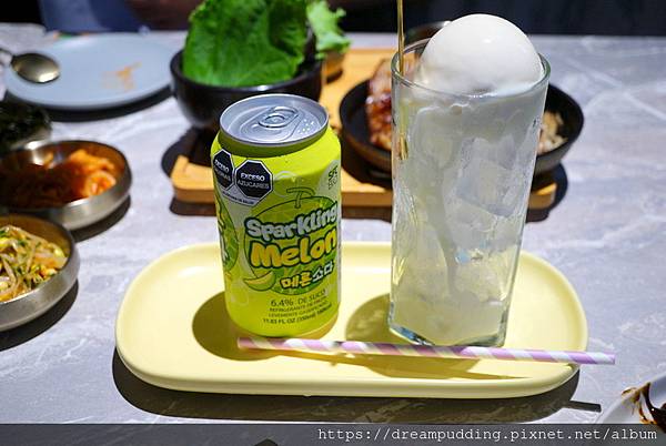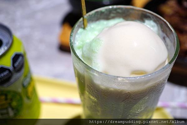 沒法喝酒的我單點飲料選擇哈密瓜口味的飄浮氣泡飲。
