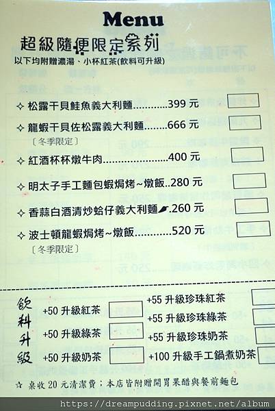 (餐點價格會隨著時間及活動有所更改,實際價格以現場MENU及店家官方網站公布價格為主喔!)