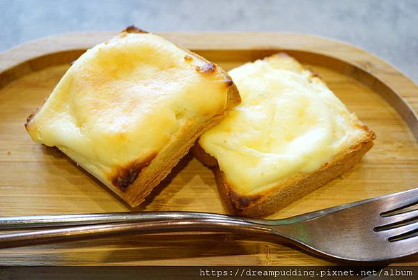 點餐附的烤麵包,上面一層香濃鹹甜起司配上烤的酥酥的熱麵包,好吃。