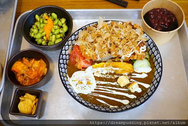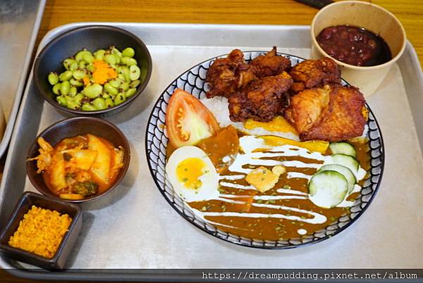 門口就很文青風,對面有收費停車場,斜對面是同一品牌的甜點豆花店-桑心合作社,本來那天打算吃完咖哩飯再去吃豆花,沒想到咖哩飯吃太飽,只好放棄豆花了@@