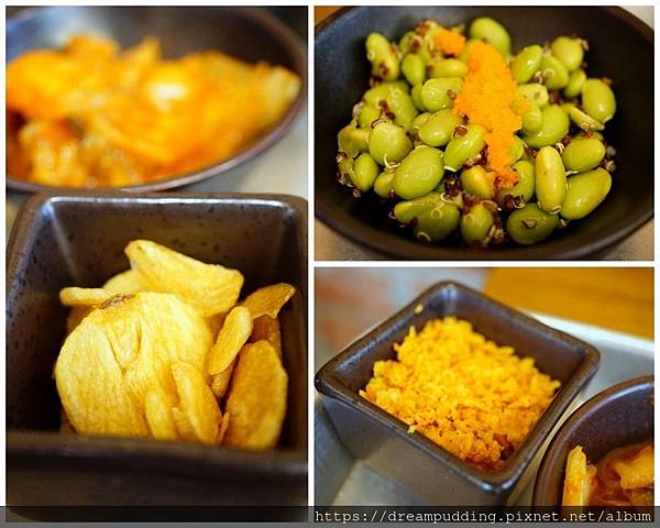藜麥魚卵拌毛豆口感新鮮不會太過軟綿,我挺喜歡;撒料可以選擇多力多滋或炸蒜片加入咖哩飯,我比較喜愛炸蒜片,跟咖哩飯一塊吃意外的很搭。