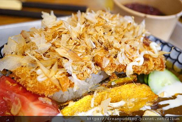 豬排炸得很酥很酥,外酥內厚食,口感緊實帶有肉汁,搭配飄揚的柴魚片還有微甜美乃滋,整體感覺很棒啊