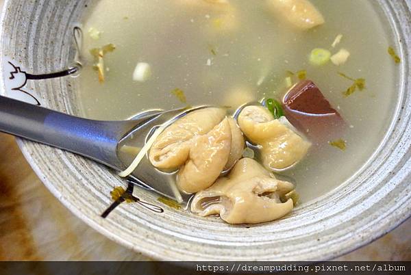點餐時候有註明不薑絲,但還是出現了@@,服務人員果然太忙了,真的也是很辛苦。大腸的份量不少,彈Q有嚼勁,我挺喜歡的。