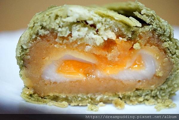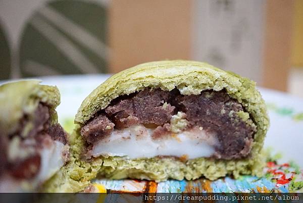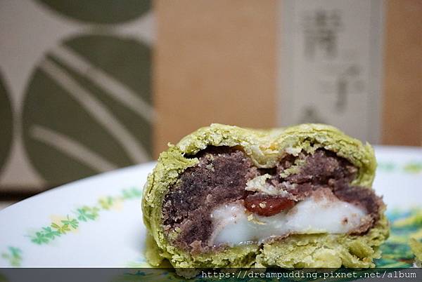 餅皮本以為會有青草味,沒想到是淡淡的、清新淡雅的穿梭,整體口感微甜不厚重,好吃。